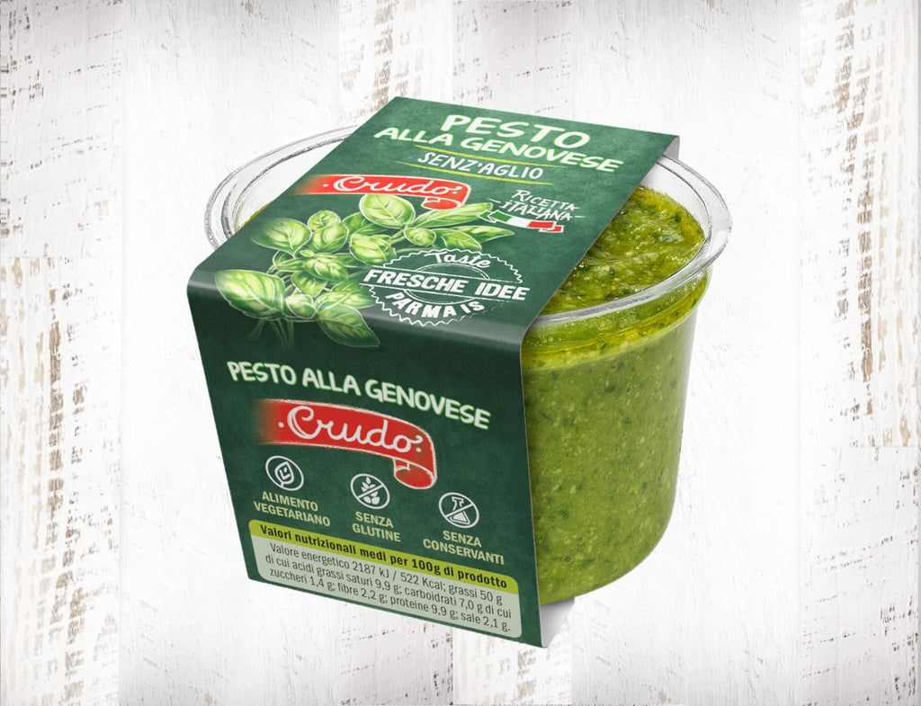 Pesto alla Genovese czyli gotowy, zielony sos do makaronu, pochodzący z Genui we Włoszech. Produkt otrzymywany ze świeżej bazylii z dodatkiem składników typowych dla włoskiego pesto. Prosty, ale niepowtarzalny przepis. Oliwa z oliwek z pierwszego tłoczenia, bazylia, sery: Grana Padano i Pecorino oraz odrobina orzeszków piniowych.