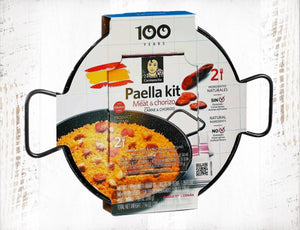 Ten kompletny zestaw zawiera wszystko, czego potrzebujesz do przygotowania autentycznej i przepysznej paelli z mięsem i/lub chorizo w zaciszu własnej kuchni: