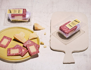 Idealne połączenie salami i sera Parmigiano-Reggiano! Najwyższej jakości salami wieprzowe, dojrzewające w specjalnym, naturalnym procesie, z nadzieniem z 12-miesięcznego sera Parmigiano-Reggiano.  Pokrojone w cienkie plasterki w 75-gramowym kubku na wynos