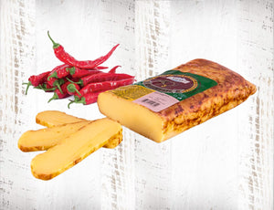 Ser (pasteryzowane mleko, sól, substancja wiążąca: chlorek wapnia, kultura starterowa, podpuszczka, barwnik:  beta-karoten), mix przypraw 1,5% ( sól kuchenna, czosnek, chili, papryka czerwona, cukier, wzmacniacz smaku i aromatu: E621, pieprz czarny, kurkuma, kolendra, kozieradka, ekstrakt papryki), granulki czosnku 0,7%, sól.