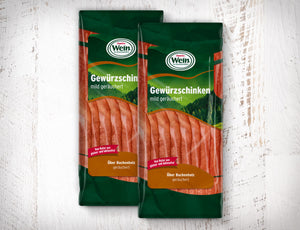 Jest to szynka łagodnie wędzona na drewnie bukowym. Specjalna mieszanka przypraw, opracowana z wielką cierpliwością przed naszego producenta, nadaje tej szynce charakterystyczny i niepowtarzalny aromat. Każdy plaster szynki otoczony jest mieszanką ziół.